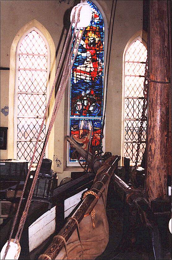 the shingle bank with a cable. Then the boat is winched up the slope over