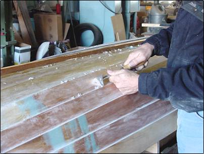 sticking to the epoxy. Once the glue on the garboard strake (the one next