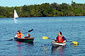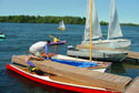 Drop trailer loaded with various Yakoos and skinboats. Here