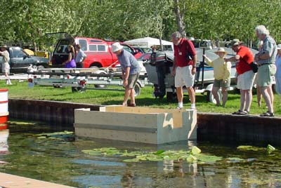 at the last minute. Here, Frank San Miguel & son caulk seams....