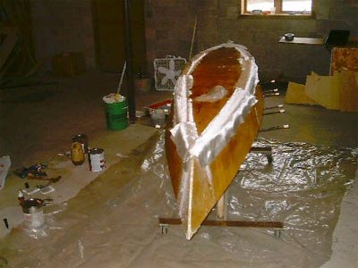 Also, the plans specifically say to avoid sheathing the canoe in fiberglass, since it is not worth the expense in a little canoe like this. Because I am planning to build a sailboat, I wanted to make my mistakes on the cheap canoe so that, when I made mistakes building the sailboat, I'd know how to fix them.