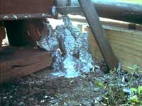 | Heating the pipe. The molten lead flows into the pipe,