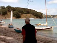 click to enlargeI didn’t mean to catch the back of this mans head, but it does convey the atmosphere on the beach at Scotts Landing, that’s Paul Grooms Pathfinder Varuna to the right waiting for me to take the helm ( thanks again Paul, good fun), a Light Dory partly obscured, Dave Perillos blue Navigator Jaunty ( follow his adventures at www.openboat.co.nz ) , and Craig Gordons Pathfinder Cavatina.