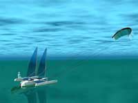 Perhaps a more elegant solution would be to fly a traction kite from the forward beam and get more power from the same sail area with none of the downward tendencies. In fact, a kite will create lifting tendencies, which will reduce the wetted areas of the hulls and lead to a faster boat.