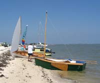 Skip Johnson (Houston, TX) was back with his strip plank canoe and AC/DC, his nifty proa which began life as his entry to the $50 boat contest. She is losing her edge as she ages, and he said he will soon strip the hardware and sacrifice her to the bonfire of the boat gods.