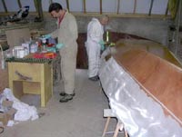 Then came Stefaan from the Belgium based company tawhiriboats.com to help me with the glassing of the entire hull exterior to shield the boat against abrasion. It took us one morning. |