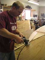 At each intersection of stringer and bulkhead, I chamfered the edges of the ply to allow epoxy into the joint, then carefully filleted both sides of each joint. |