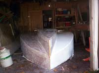 You can find anything on the inter net, and I was betting that there might be some used boats to be had at reasonable prices. I was right, we found a couple, one was in Florida, that was not going to work, too far away. We found another that looked like it might fit the bill, but the add said it needed some work. In an exchange of emails we found out that it had fallen off the trailer while going down the highway. It needed a new hull! That was out. But in my searching, I found this thing called stitch and glue boat building. A novel and new concept to me. It became something of an obsession for a while as I read and re-read anything I could find out about it. I bought books; I lurked on the fringes of chat groups and decided that I can do this. My daughter and I looked at many different boat designs, and settled on the Micro Trawler designed by Phil Bolger. One of the books I bought was Boats With an Open Mind and in the list of sources was a place called Common Sense Design. Common sense, sounds like my kind of place. I looked them up on the web, and ordered a set of plans. Gerry and his wife are among the most patient, long suffering people that I know of. Even when I forgot the time change and called them at 5:00am. He answered all my questions and replied to all my emails. He got a lot of them when I was recovering too. He also included a set of plans for something called a pram with the plans for the Micro Trawler, and Emily decided that she needed to build a boat at the same time I did.