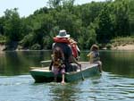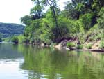 At the foot of Ferry Bluff is Honey Creek. The take-out is a short distance up this creek. It is navigable, but only just. You have to stay right around the first bar, then cut radically left to stay in the deep channel. By “deep” I mean maybe three feet, and by “channel” I mean maybe 4 feet wide. And of course this will probably be different after the next big rainstorm. (This trip was July 1, 2007) The majority give up and wade.