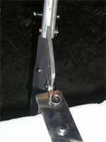 Have you ever wondered how to tighten the nylon locknut inside the tube when an ordinary open end wrench, a box wrench or a socket wrench either could not fit in or lie flat on the tubes curved inner surface? To solve this problem I took a piece of half inch steel conduit and with a metal cutoff saw blade I cut a slot the width of the nut. Now I was able to hold the nut in place while I used the screwdriver on the outside.