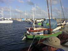 The amas that Charlie added to the Sharpie were designed by Graham Byrnes. Graham gets the prize for towing his boat farther than anyone - all the way from Oriental, North Carolina. He brought his daughter and granddaughter along as crew.
