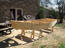 You see, I had started building Embers Watch in December of last year specifically for this trip. As it was winter, I could only do things like make the rudder, lee board, and bulkheads. I figured there was plenty of time to complete her and test sail before June. I started hull assembly in February. But I am forced to build outdoors and in the open, so the loss of 5 or 6 entire weekends and many other days to rain put me behind. On the night before we were to sail, I was still running rigging and attaching cleats!