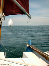 So here’s a few ramblings about shooting digital pictures in a hostile, moist environment (please look elsewhere for artistic instruction). This is a Duckworks perspective. That is, you can usually solve a problem by throwing lots of money at it, but we’re looking at low-cost solutions. (The obvious expensive solution is to buy a good digital camera and then spring for a waterproof plastic case, if one is offered for it. But the case alone can cost as much as the camera, an amount that would pay for the plywood, epoxy and fiberglass to build a small hull.)