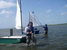 Why, why did they appeal to me?  It was that total lack of pretension, the having-fun-out-here attitude, the struggle through adversity and laughing all the way.  Who thinks sailing a four foot by eight foot sandbox 200 miles isn’t adversity?  Then stopping and helping everyone else along the way, just because it’s the right thing to do, expecting no thanks or reward?  Andrew Linn was actually fearful I would be angry he helped Mike finish the race…Andrew fully expected him to sail to a rescue point and drop out.