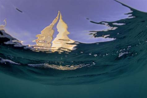 What a beautiful image, this photograph by Carlo Borlenghi  taken just underwater at Capri. Induced by it, my imagination runs riot. Though not a scuba diver myself, snorkeling just below the surface in the sparking water of the Fiji islands a few times brings on the memories of how water just above one laps and  ripples, sometimes distorts,  merges colours to create almost abstract images.  Taken at Rolex Capri Week in May last year.