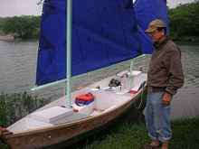 I made the yard and boom a little oversize for two reasons: I wanted extra flotation in case of a knock-down, and I thought the other Laguna's I saw had too much flexibility in the spars so that the sails flattened too soon in a breeze. These seemed nicely stiff.