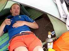 Poor Andrew. He had a not-quite-water-proof bivy bag he had brought with him. The poor sap. He sat out in that rain all night… wide awake. I can only imagine it as some kind of Chinese torture gone worse. During this time he passed from sane to insane, and then back again (I think!). He should have just climbed into Sean's tent. I am sure he would not have minded. Hell, they did the Texas 200 a few weeks later together. So when he came to my tent door with a thousand yard stare and TOTALLY wet, I felt sorry for the man. I sipped my coffee and whiskey and really felt bad. Honest. He had spent all night thinking about how we were going to get out of this mess. It was something like he was going to flag down a boat or something and go over to Harker's Island then somehow get all the cars and trailers down to Harkers where all the boats will be after motoring back up through the hook. I let him down easy and said we were going to wait out the day in our dry tents and then tomorrow when the weather hopefully moderated we would go straight back up to the Gun Club. He went up to the light house and dried everything out. By the end of the day his brain was dry and good to go. In the afternoon the rain stopped but the wind was still strong. I was disappointed that the weather had turned out the way it did, but hopefully that means the next OBX will have perfect weather.