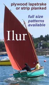 The mizzen mast/sail was more of a challenge, it's a modified gunter and the yard ran up on a wire jackstay with two rings around the jackstay. This turned out to be impractical and resulted in the drooping of the peak evident here. While I was mulling over this problem I continued to read Duckworks and lo and behold in one of Jim Michalak's semi monthly columns the solution was presented. Jim had the same problem with a gunter rig he was using and finally solved it by using a short piece of mast track on the back of the mast to guide the gunter yard. I needed to offset the track from the mast by about an inch and a half which was the reason for using the wire jackstay in the first place. I added a truncated triangular piece to the back side of the mast and fastened the mast track to that. It works a treat.