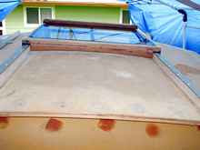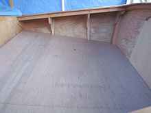 I removed the 10" high motor well and cockpit framing. The skegs were removed, too. Below is the framing wood showing some kind of glue drizzled onto the wood.