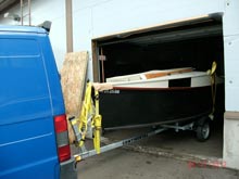 KOTW being towed out of a Finnish warehouse, on a Latvian trailer, by a Russian truck. |