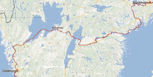 Really good day today- sailed right through the middle of Stockholm - what a city - big, not particularly pretty but vibrant. I happened upon the populous on their way to work at 8:30 am, and they were all on bicycles. I watched slack-jawed as many hundreds streamed over a small bridge in the middle of the city looking for all the world like a Tour de France pelaton. Sun shone today, a little rain, but not so cold and smooth water. Am still in the archipelago, hoping to have a good day tomorrow and maybe get close to the entrance of the Gota Canal. Went through my first lock today, in the middle of Stockholm. Didn’t even know it was a lock until I was already in it. Swedish for lock is “sluss”. I can remember that.