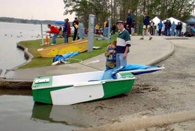 Ken’s boat was built using tack and tape methods and Luan – no chines - and was really light. His boat has a centered dagger board and mounted a stock Sunfish sail. He really flew over the course.