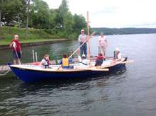 At the Woodenboat show in 2013 I was out rowing the whaleboat minding my own business when this apparition drifted out of the fog. It was sleek and beautiful and rowed by attractive smiling people. I was smitten. I had never seen a St Ayles Skiff before but went home determined to get one for my town.