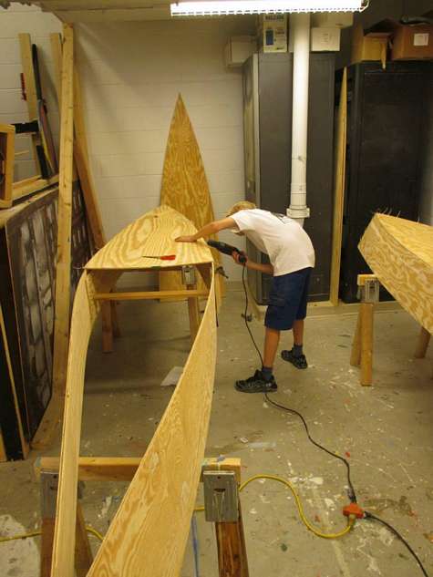 After contemplating for a long time about this special building method (Plywood Canoe Concept - Birchbark Style), I actually started to build a canoe. This is my "tree".
