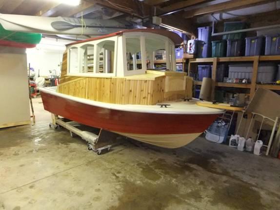 The boat scheduled to go on this almost-here "Damn the Drizzle' cruise over in the Puget Sound country got hauled home from storage, lifted off her trailer, and rolled into the shop on that veteran, shop-worn, building cart.