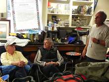 Stepping through the door the noise of a boisterous gathering hit us first, visually there was action everywhere! Friendly conversation, laughter and of course the queue by the buffet. Much of it centered on Mike and Jackie Monies' table where we too stepped up. Waiting our turn, we introduced ourselves, and while friendly enough, Jackie simply encouraged us to grab something to eat, hardly the excited welcome we'd expected, where was the love? While eating, I saw Chuck and when the opportunity came, we likewise made introductions. Also friendly but! Jackie interrupted the conversation and announced a hotel room was available due to a cancelation, "any takers". A very short pause and Dianne spoke up. I was surprised as we were planning to stay in the boat or at least I was! The boat had already come in handy at rest stops as a warm room on the cold drive down, thanks to a small woodstove. But Di was tired and wanted a hot shower after the long haul. Showing us the way to the hotel the mystery as to why our reception was underwhelming was discovered.
