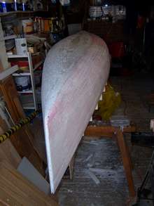 Internal and external gunnels rounded off and glass PVA'ed over them.