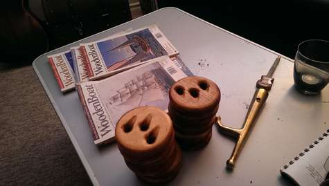 Its cold here. 4 degrees with -20 to -30 wind chills. I spent some time making belaying pins for my Mayfly 16 in my unheated garage. Just trying to get something accomplished despite the cold. 7 pins will fit in the mast partner.